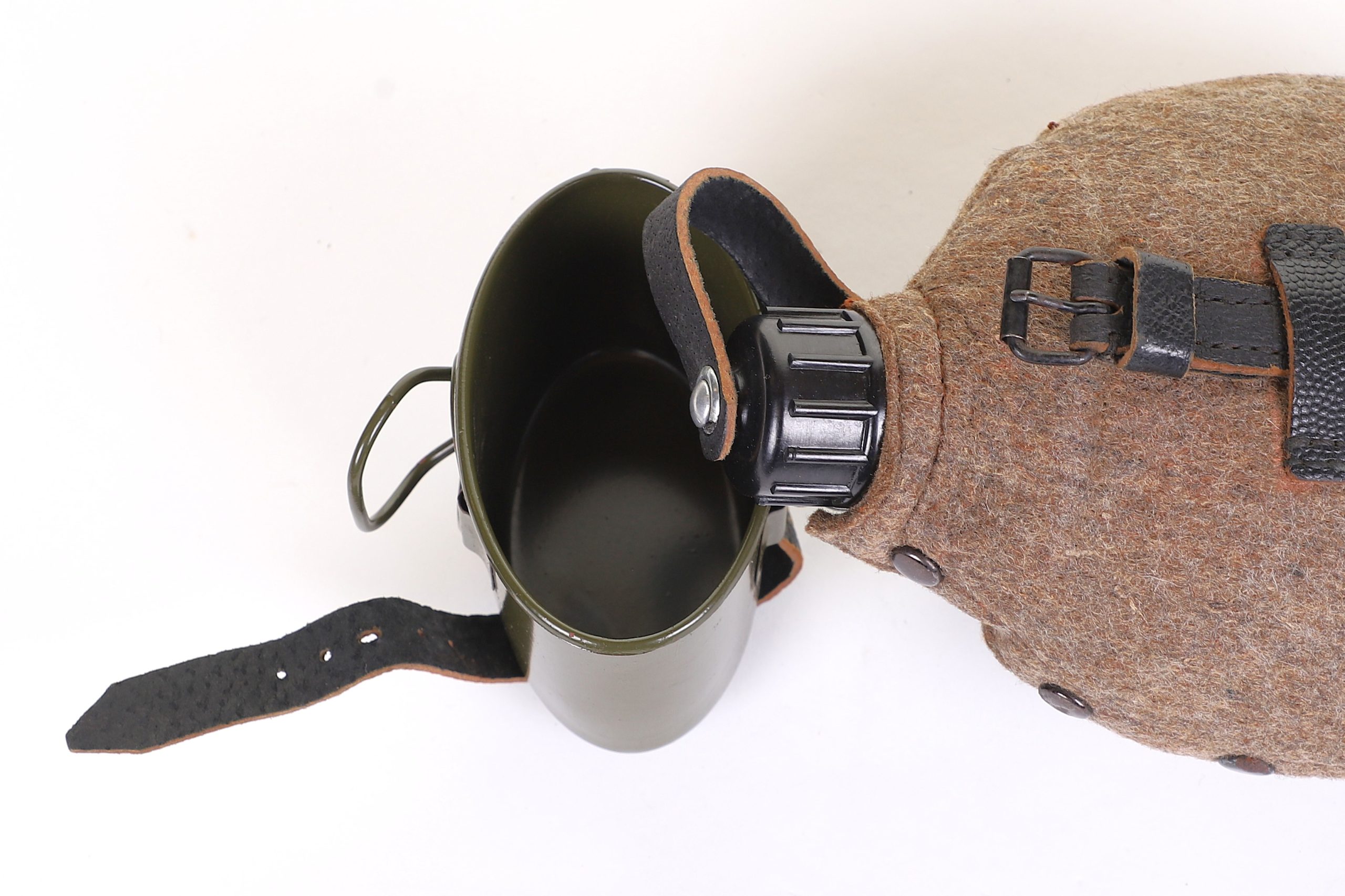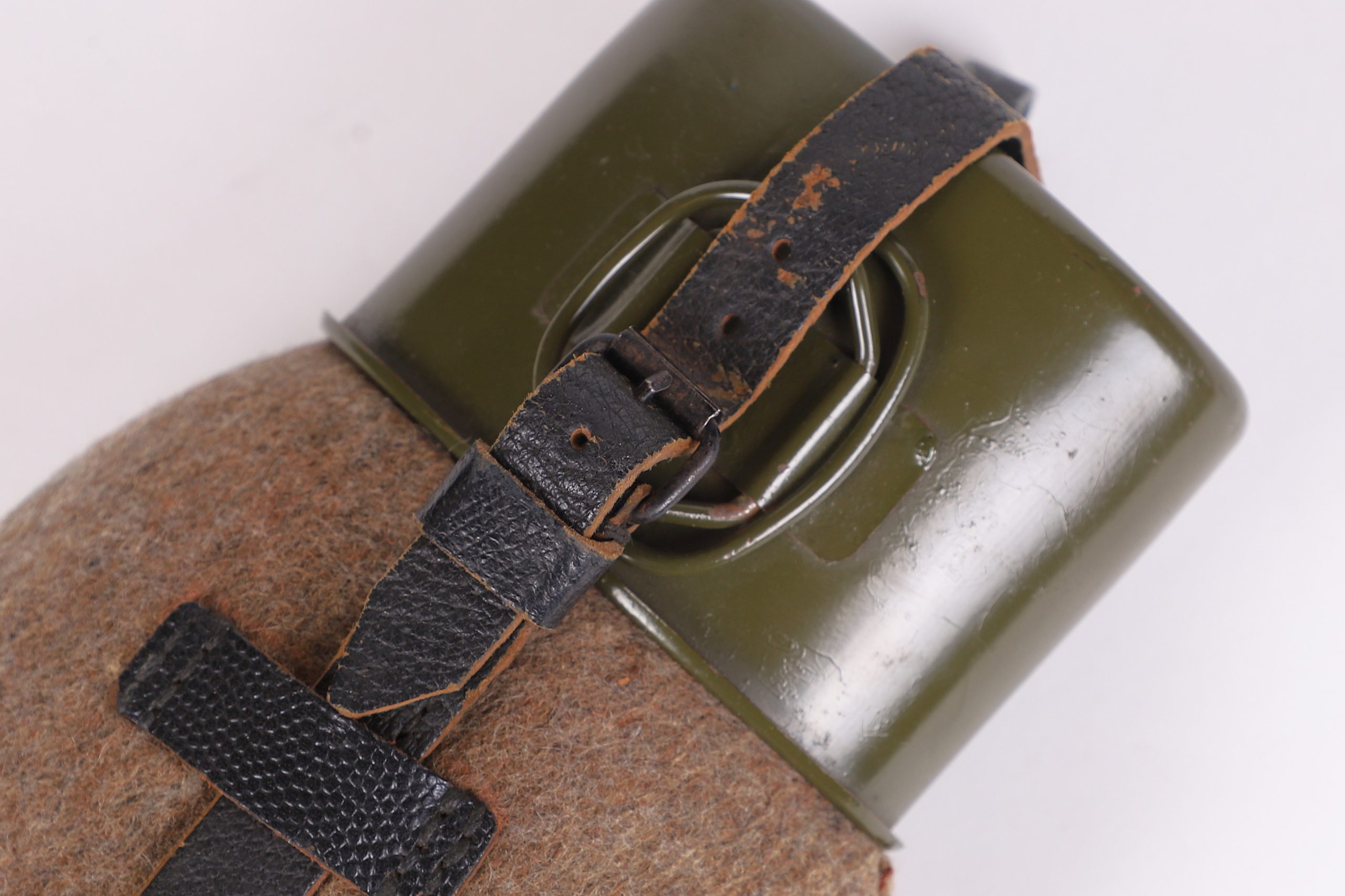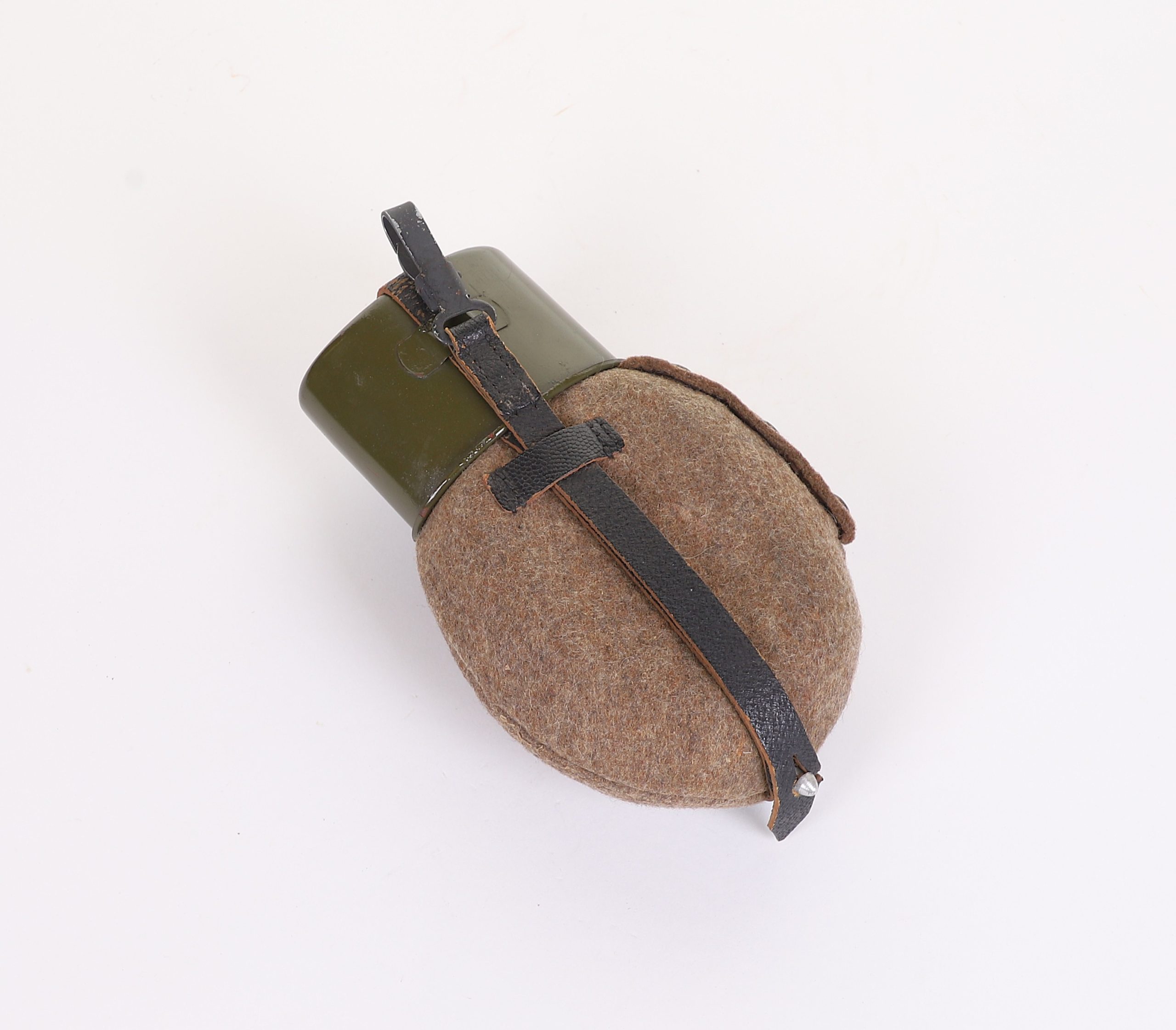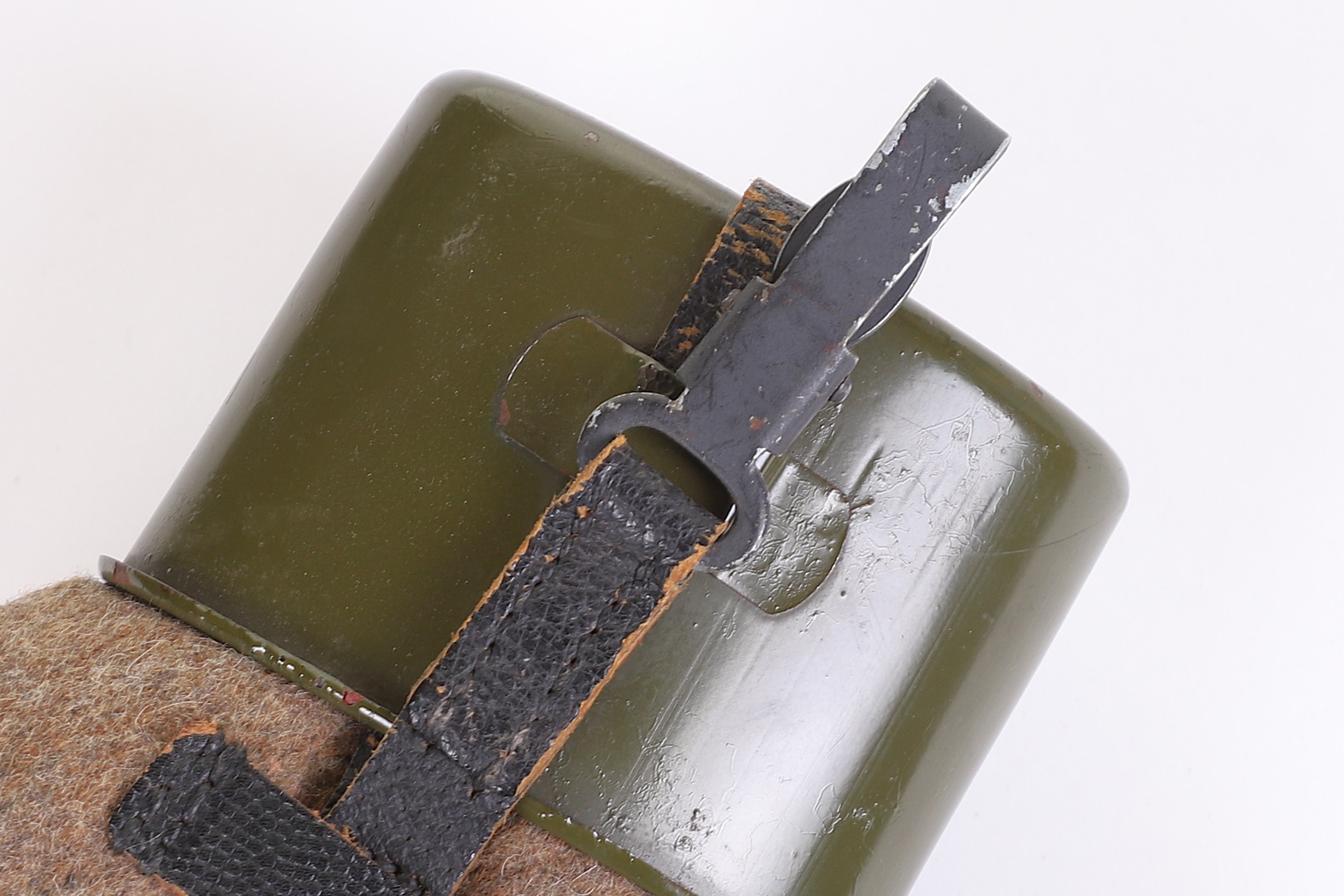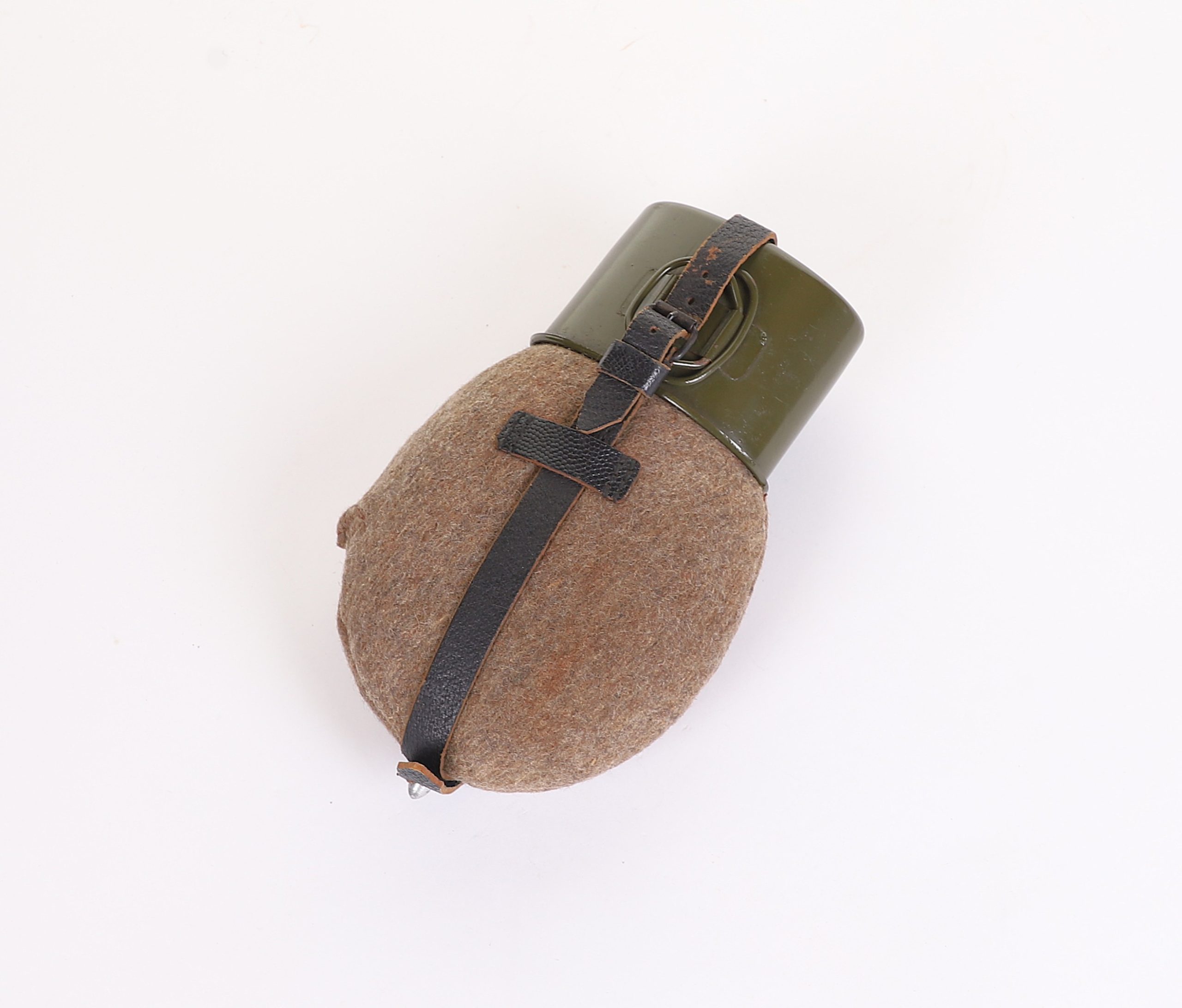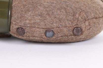 Fine overall condition and looks almost unissued. Paint is superb with almost no wear at all and the felt cover in perfect. Strap looks good, except for one break at the bottom strap which is pictured. Outstanding example that display very nicely.