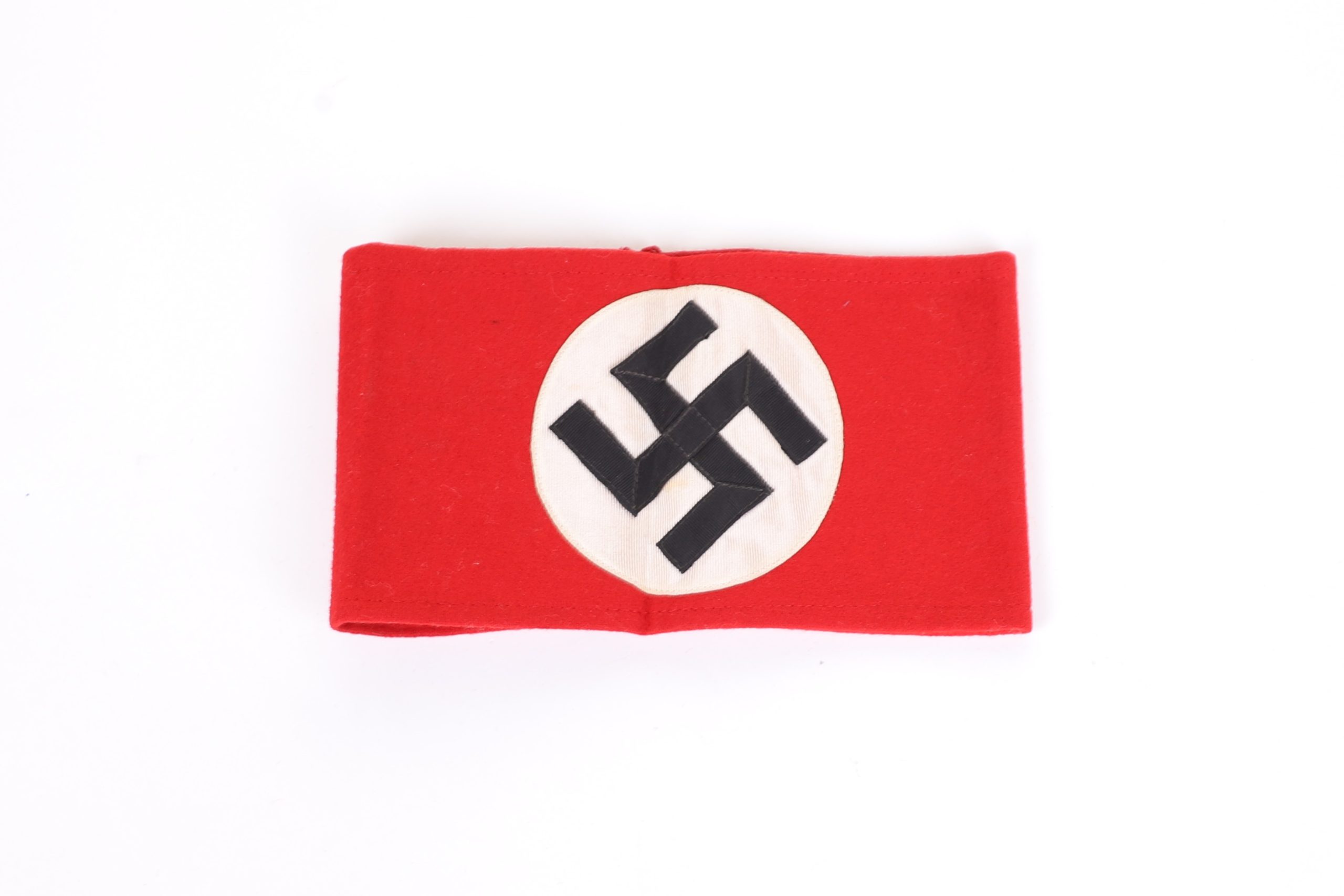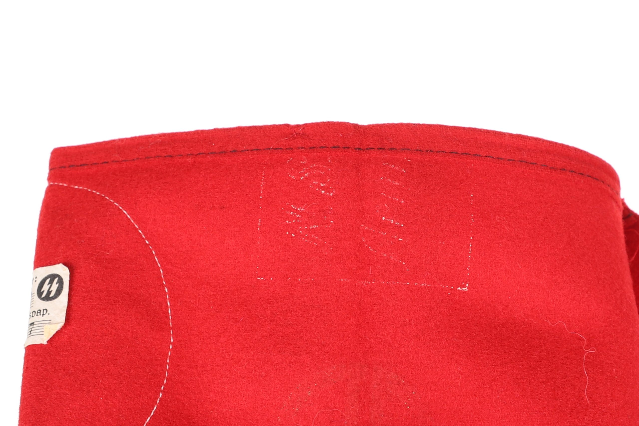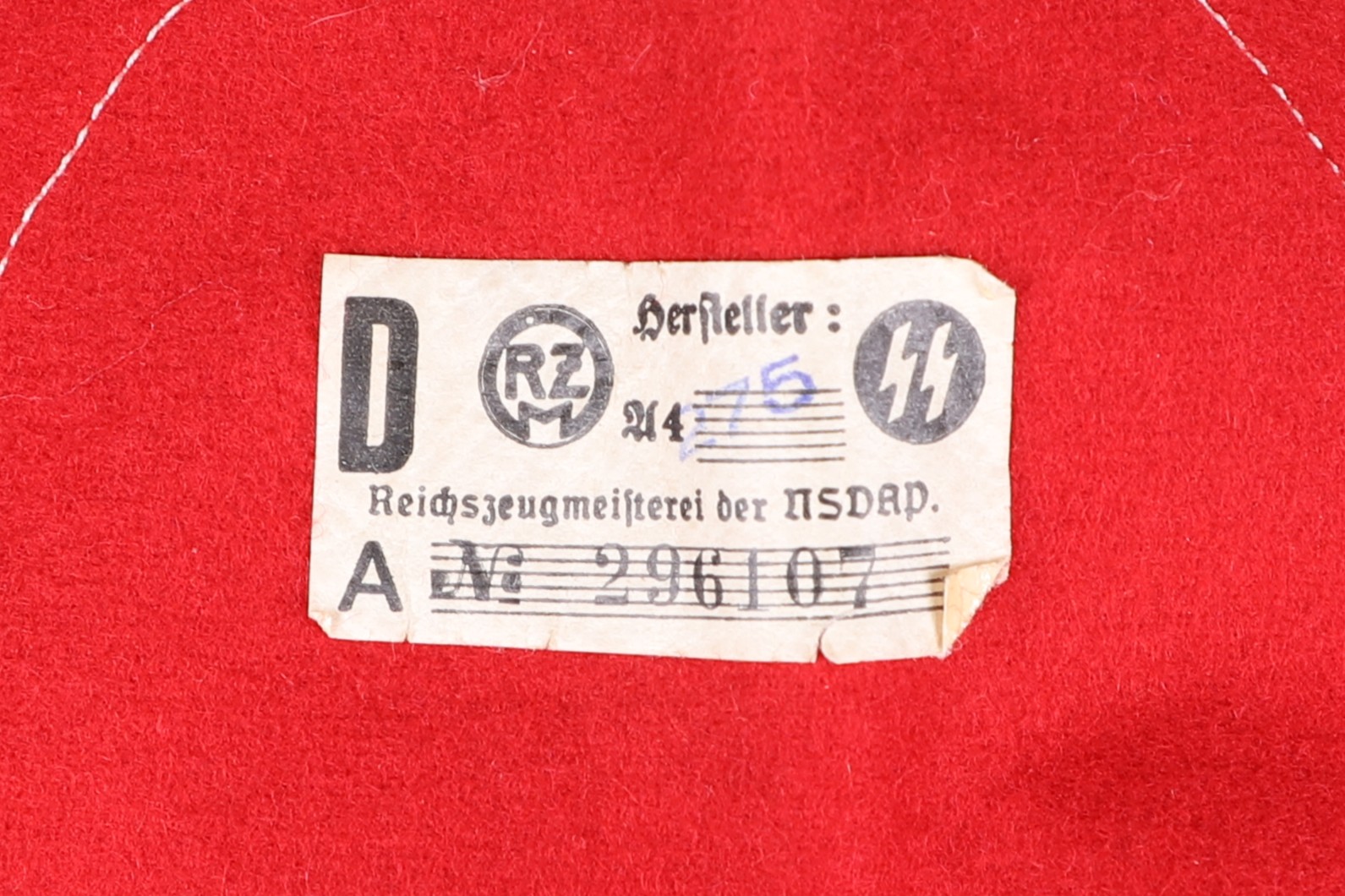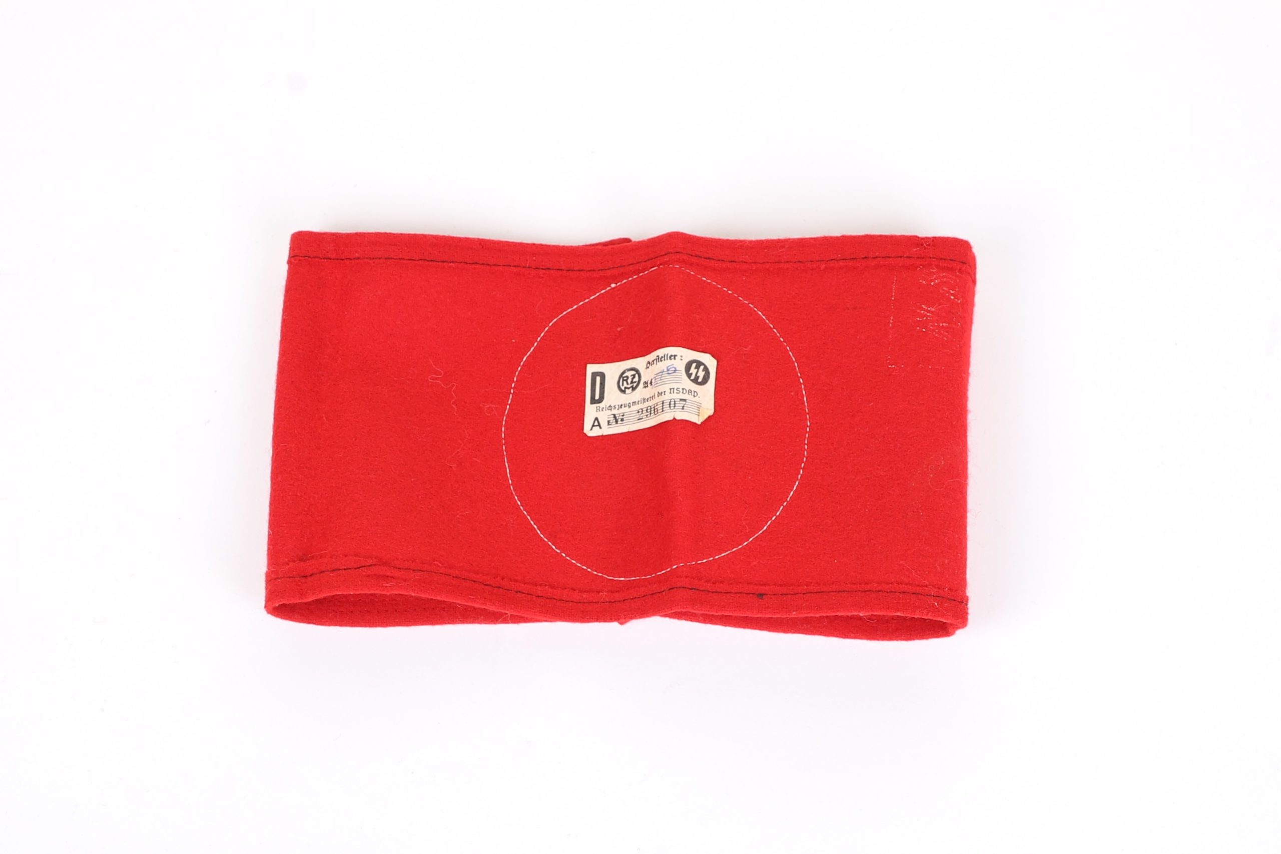 This is a stunning early model armband. This version was before they added the black stripes and is a high quality construction. Multi piece swastika to the center on red wool. Interior has the original paper RZM tag with SS runes and even has a faint acceptance stamp. Hard to find piece in amazing condition.