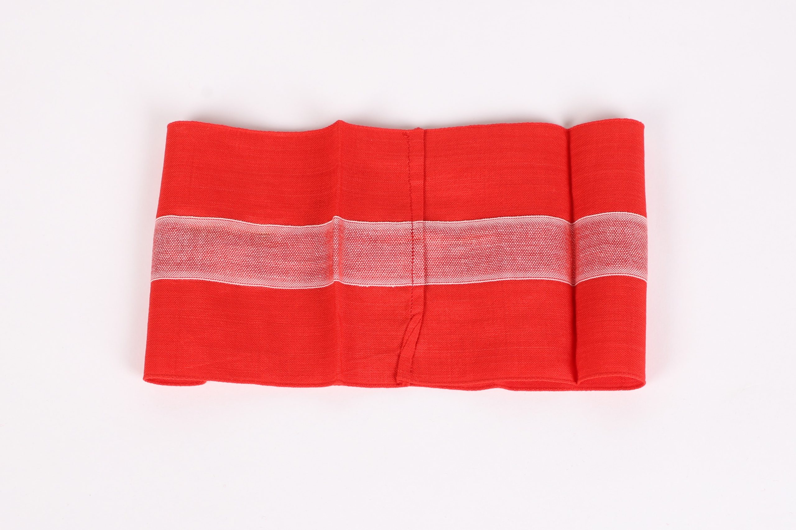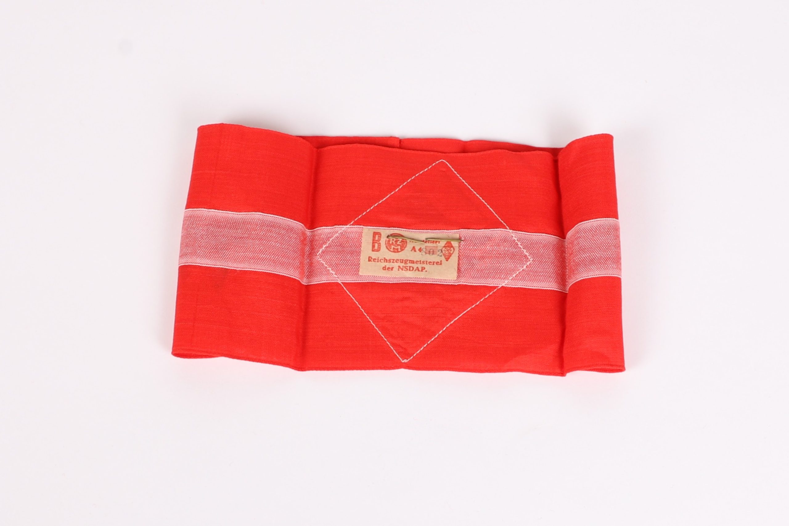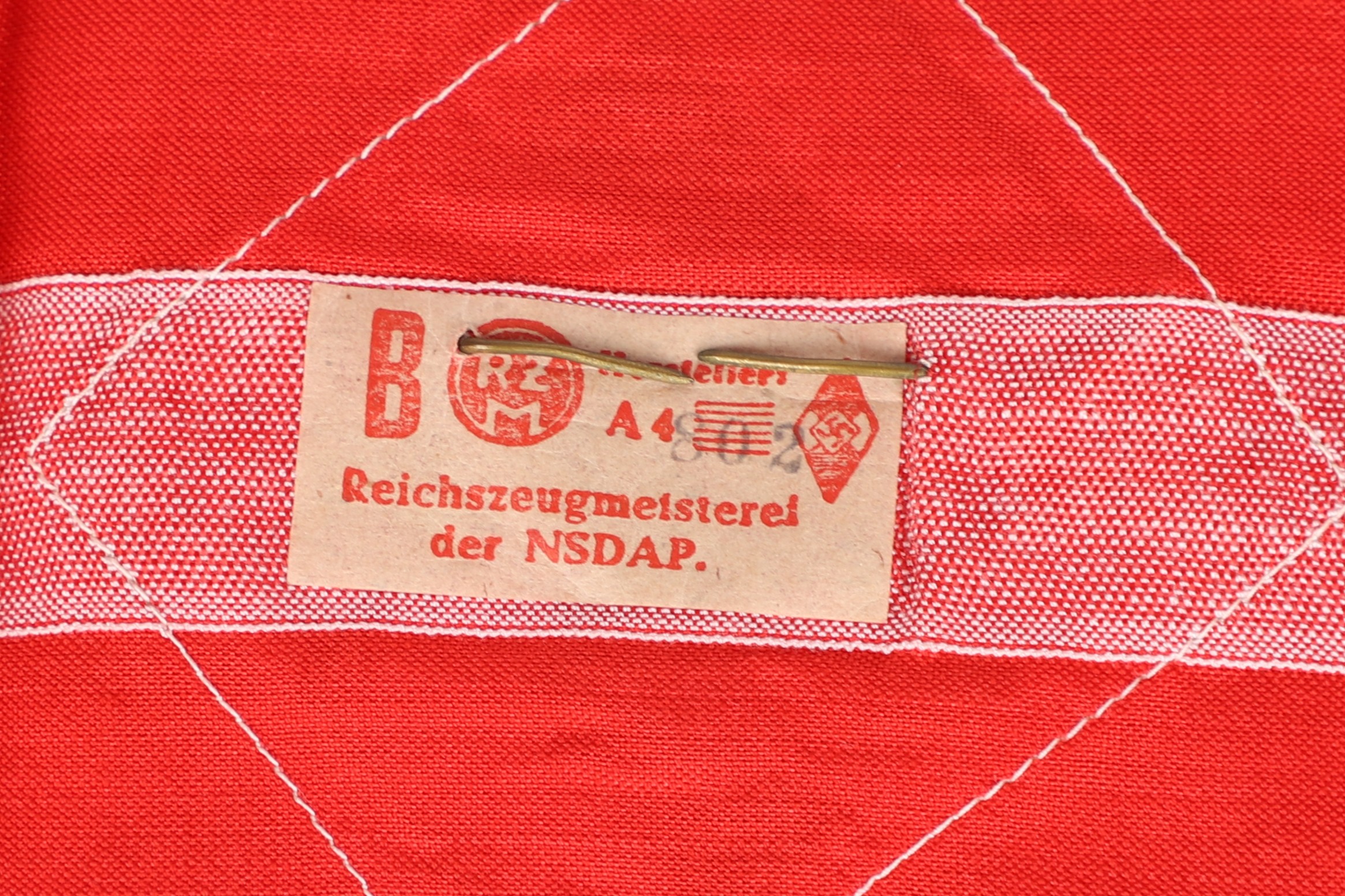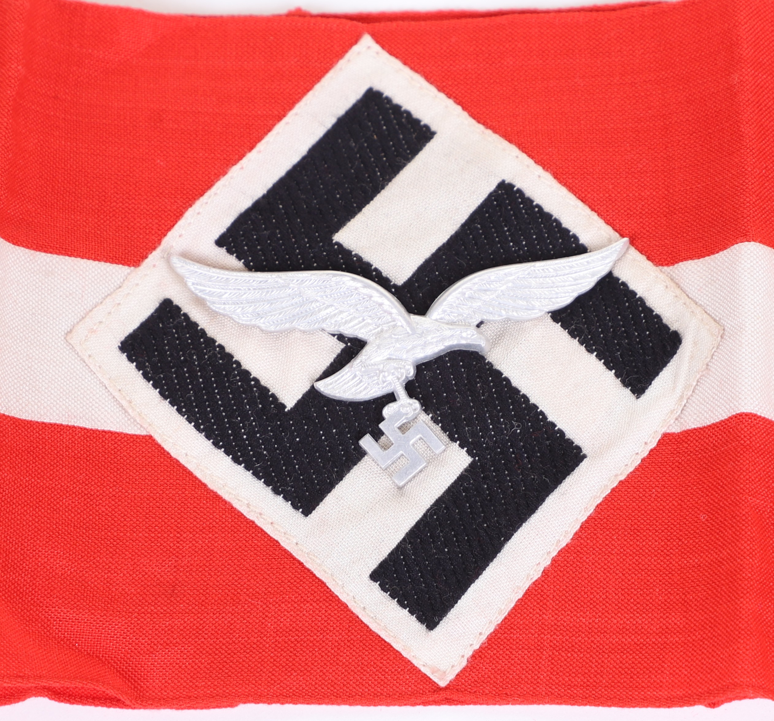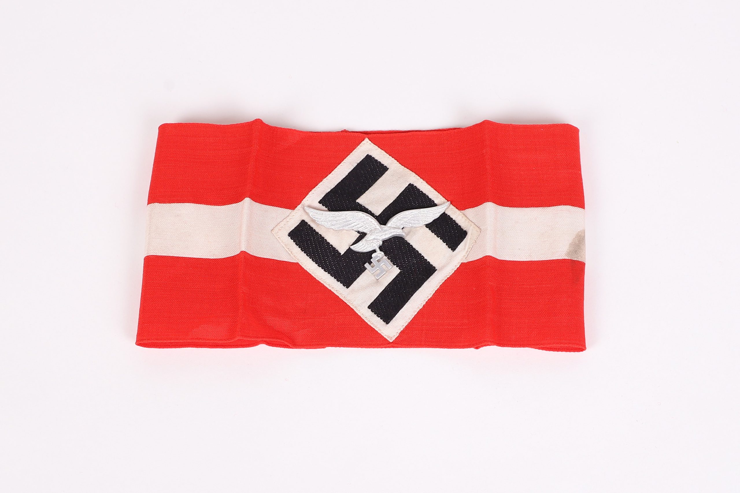 Perfect example of this style armband. These were often worn by the Hitler Youth who helped the Luftwaffe and shows the standard HJ style band with a Luft insignia pinned to the center. This one is very clean and shows nearly no wear at all.