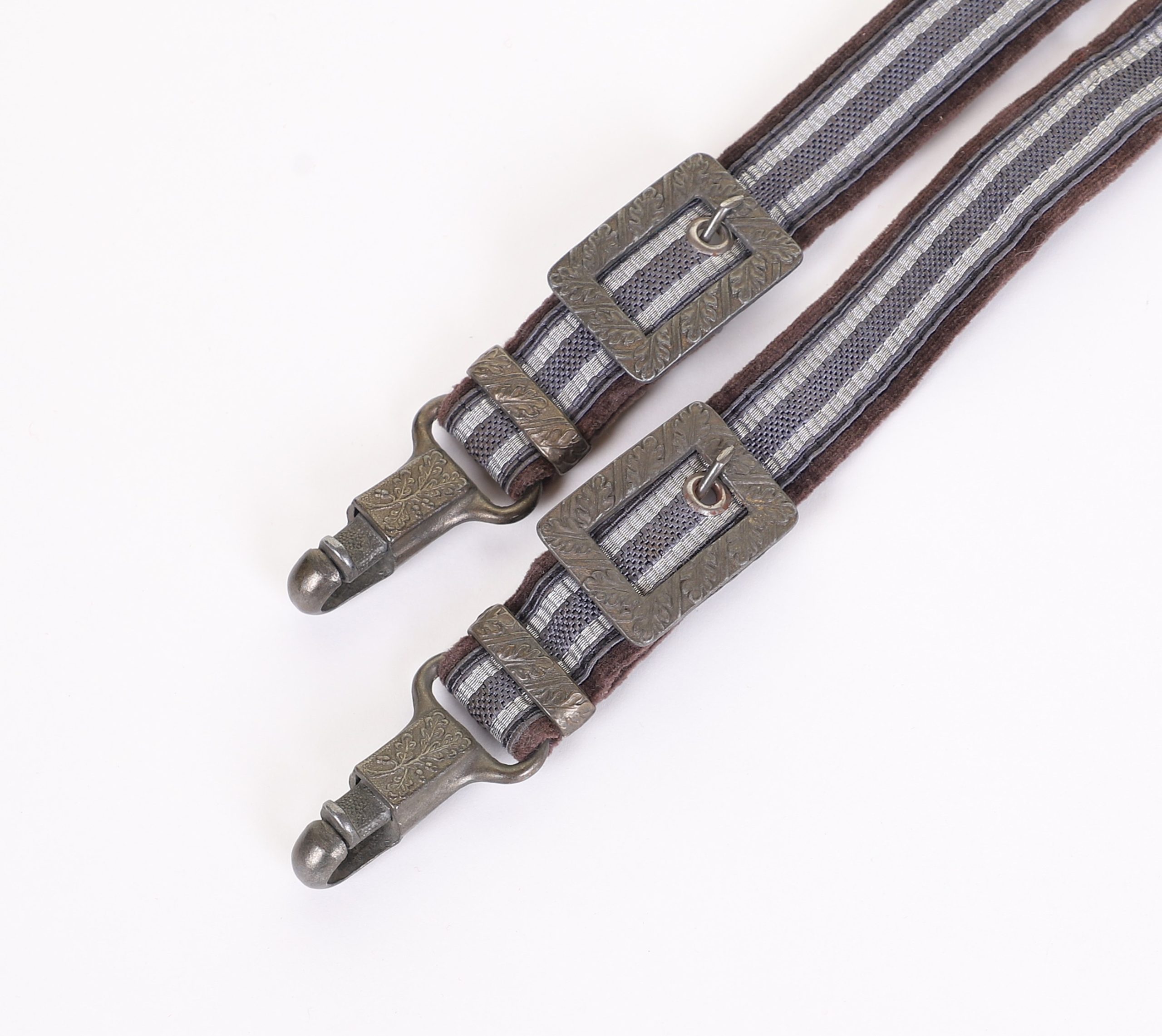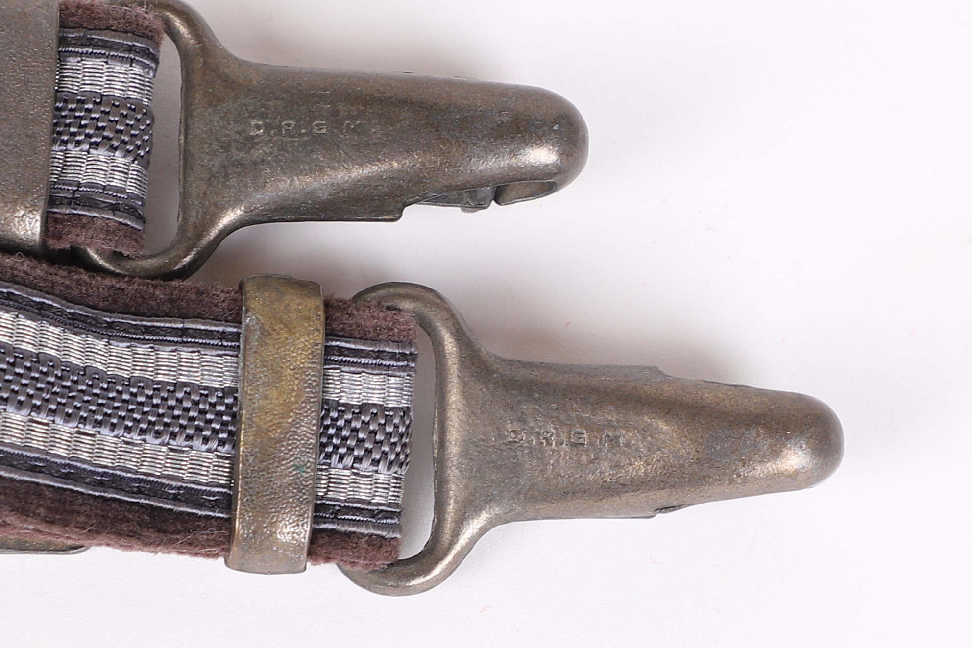 Fine overall condition deluxe model hangers ready to be paired with a clean dagger. No oxidation, no heavy wear and marked nicely to the reverse of the clips.