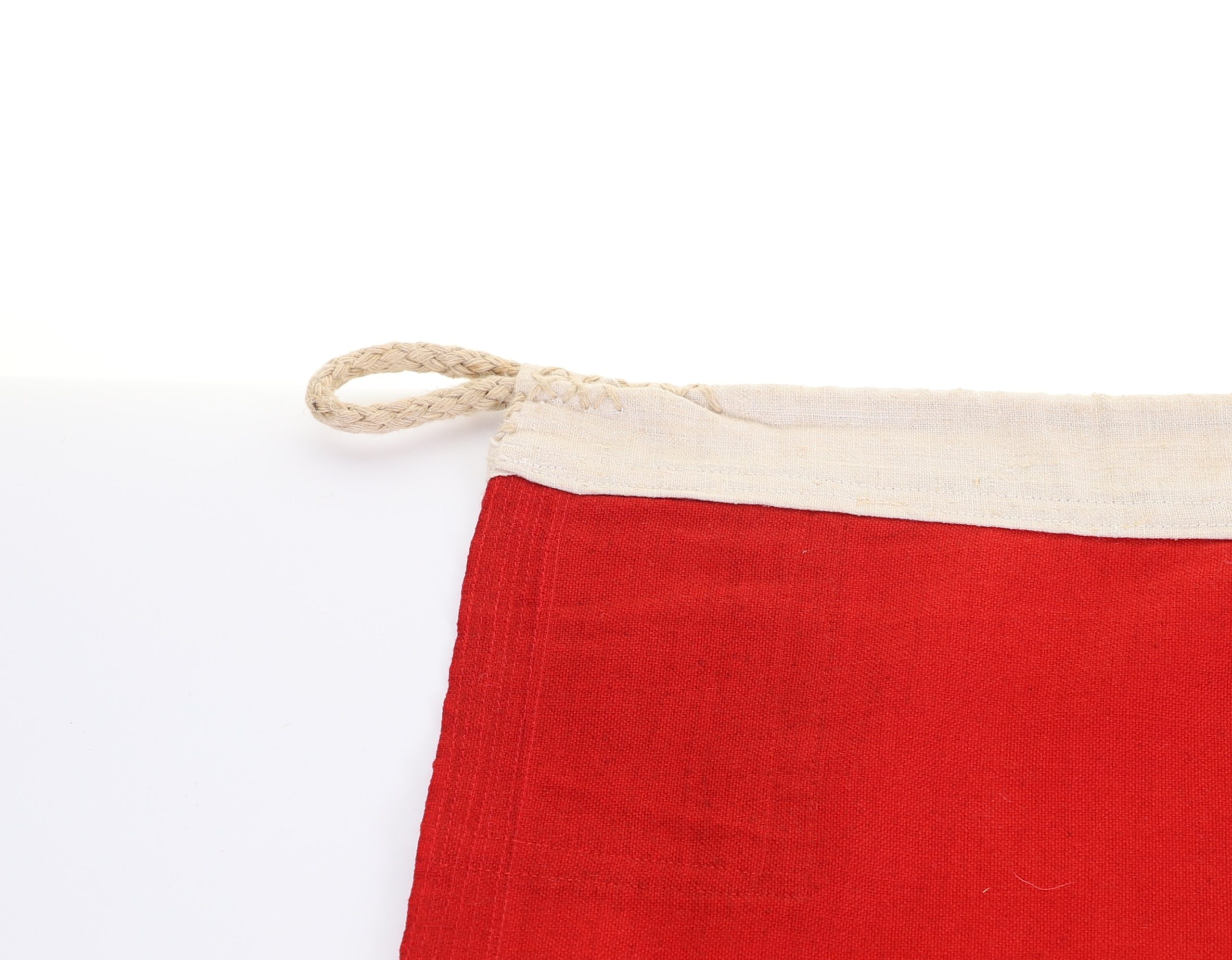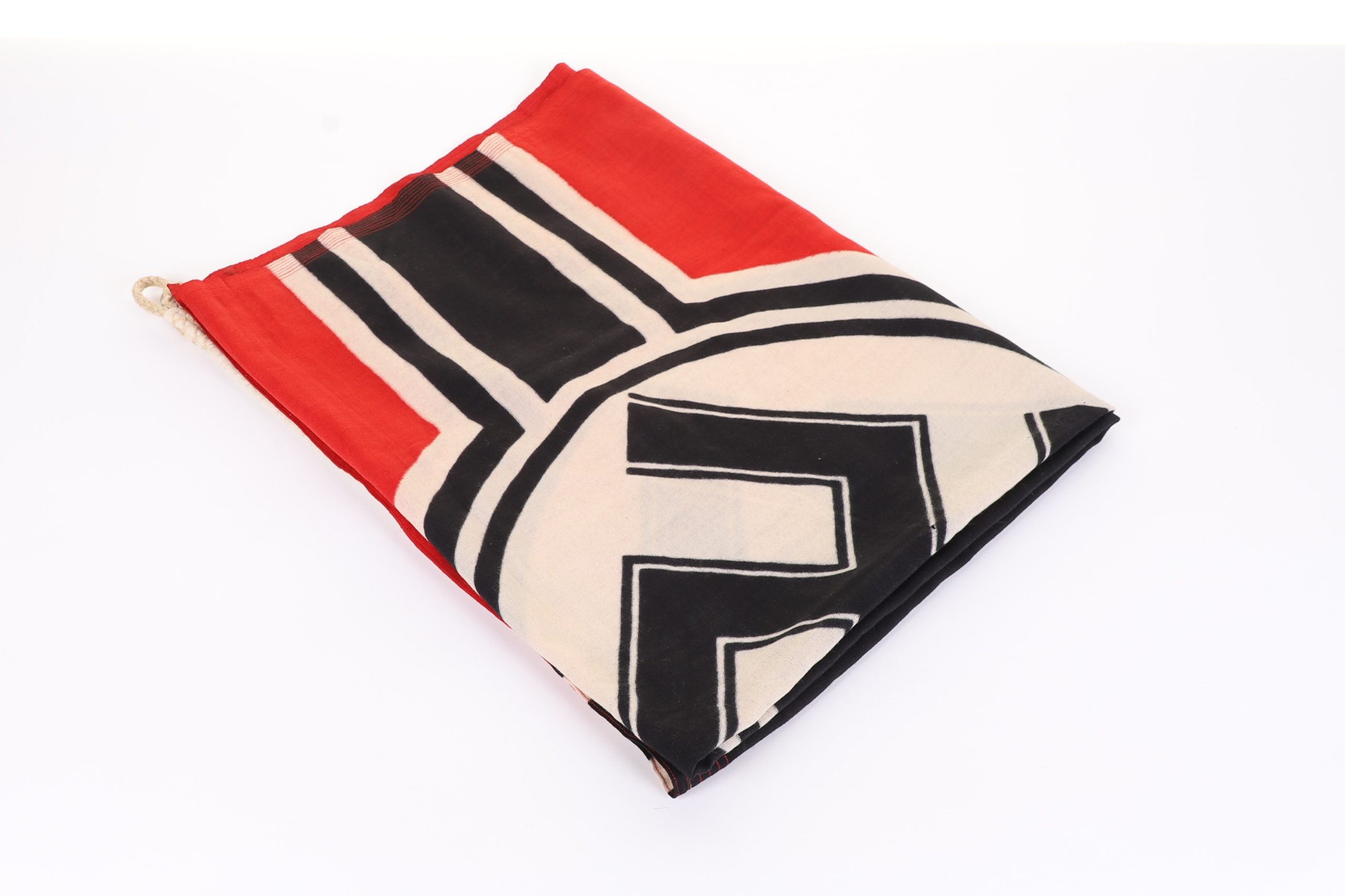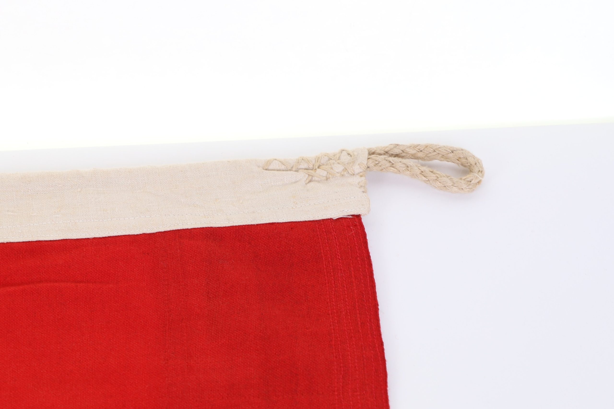 Perfect display size flag in overall very nice condition. Has a few small holes, but nothing very detracting. Great color and nicely marked on the bunting. Has the full lanyards still intact for attaching to be flown.