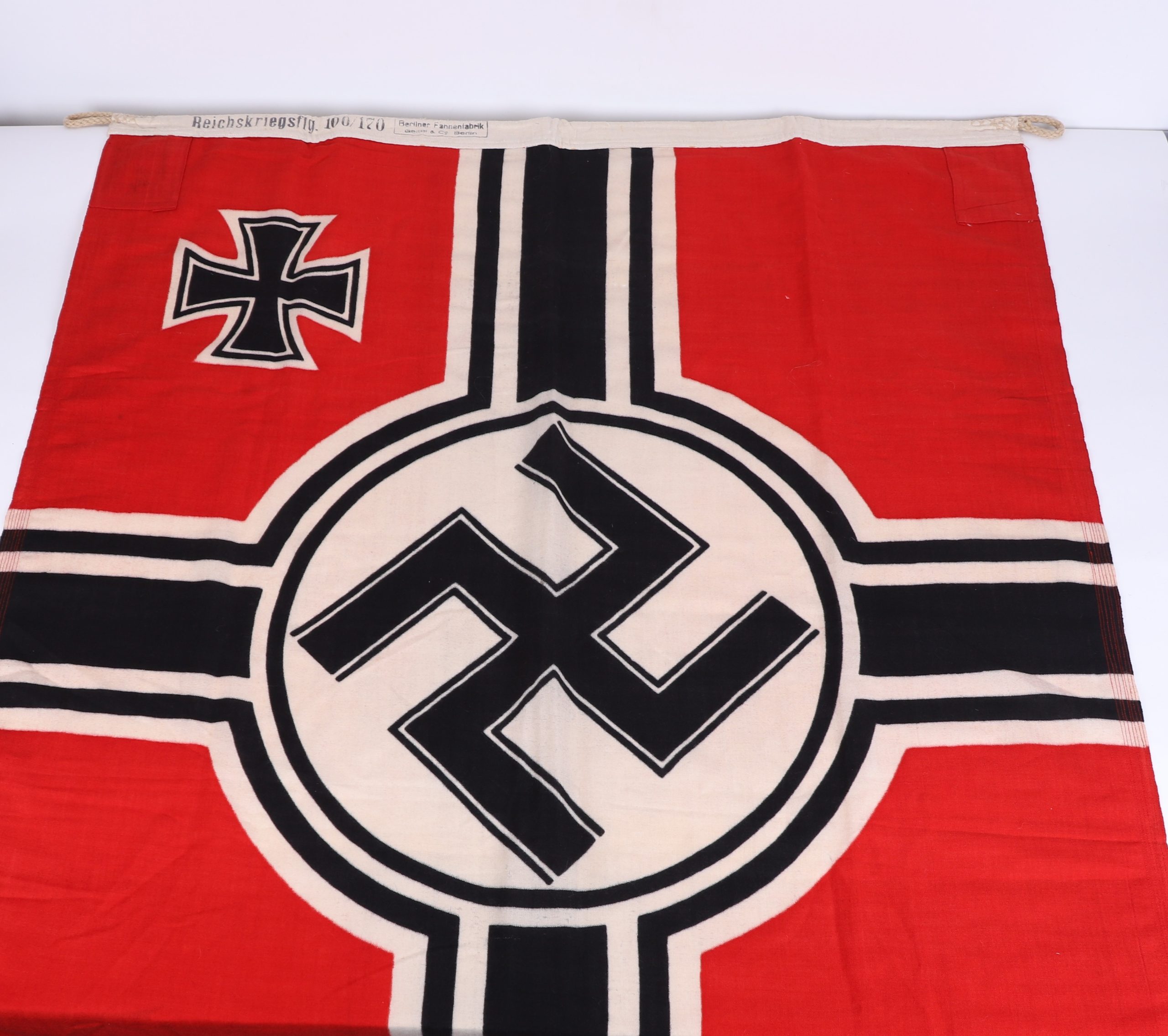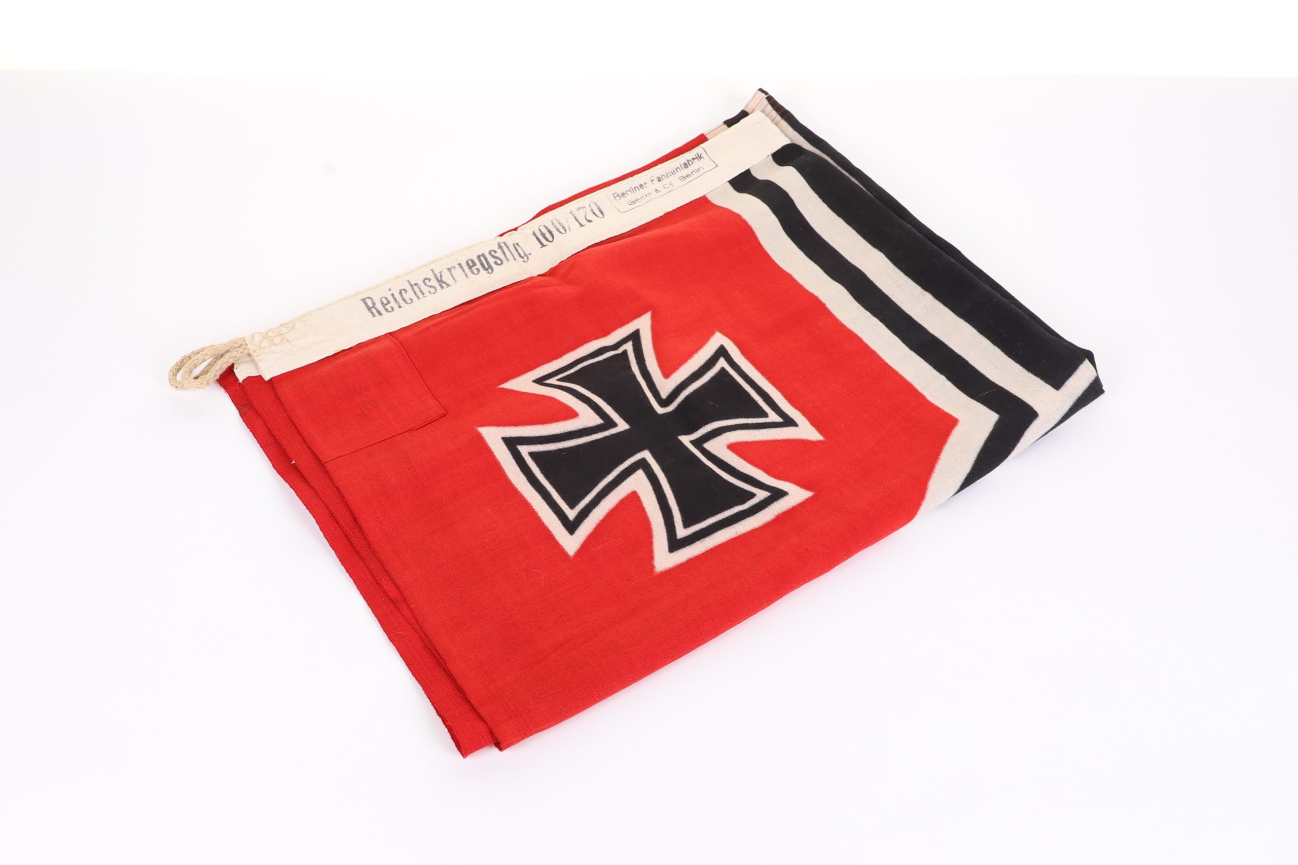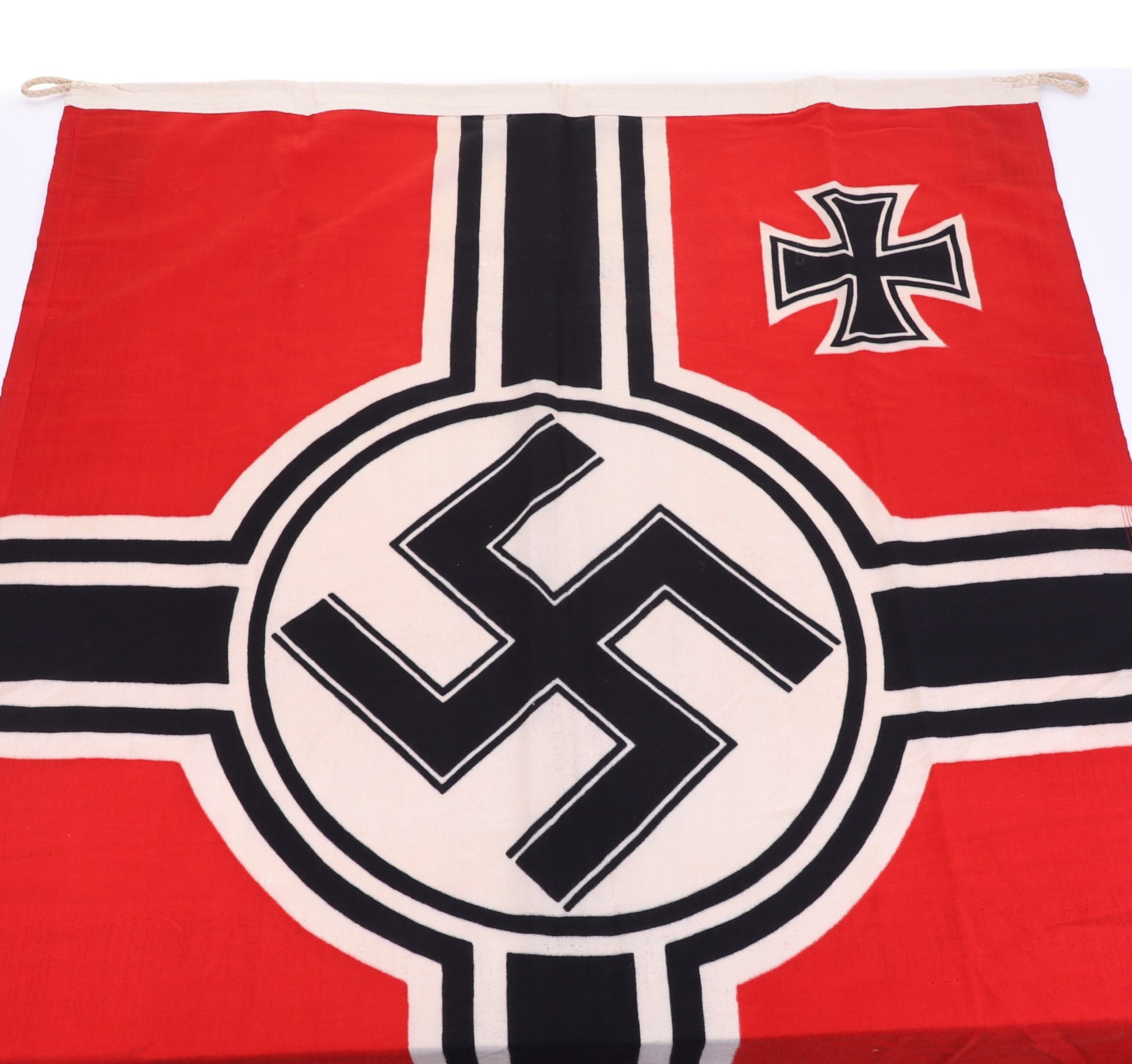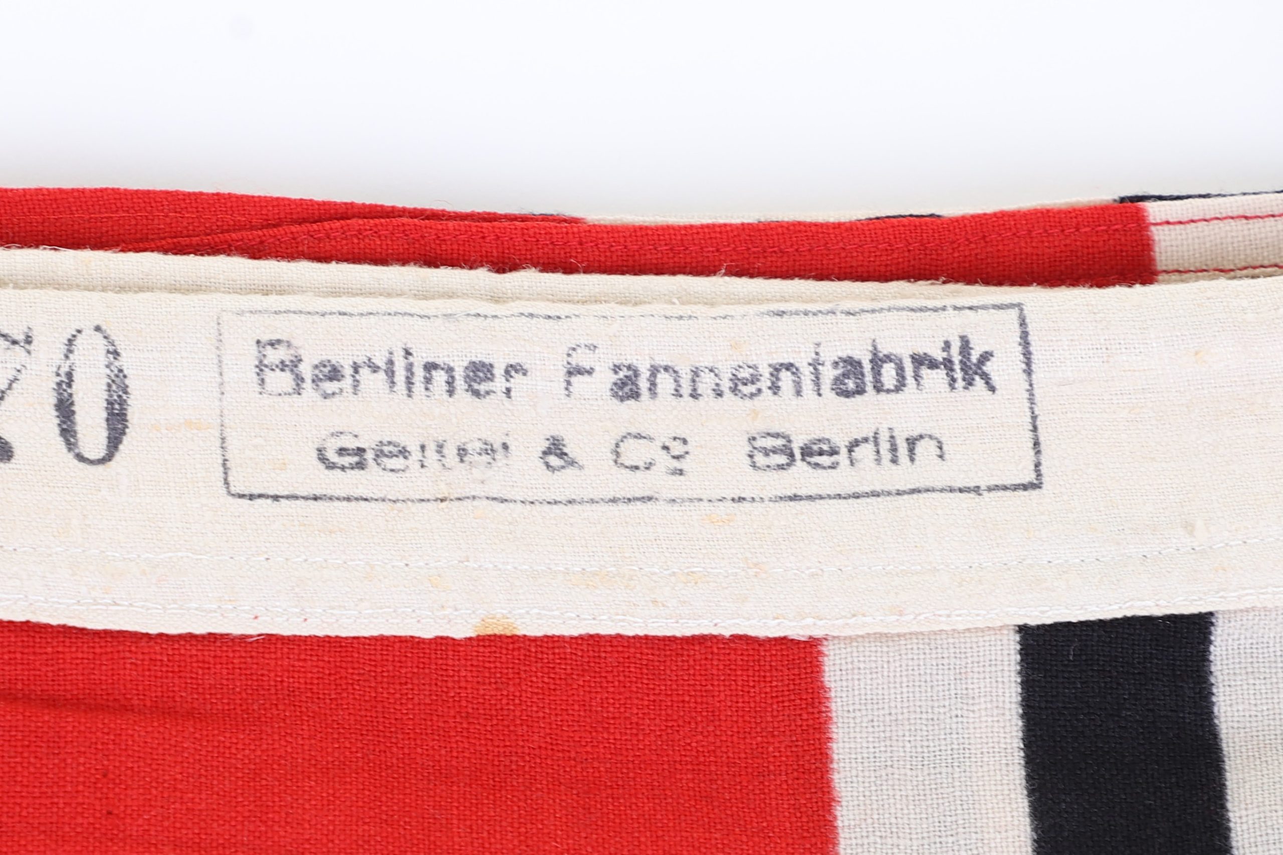 Perfect display size flag in overall very nice condition. Has a few small holes, but nothing very detracting. Great color and nicely marked on the bunting. Has the full lanyards still intact for attaching to be flown.