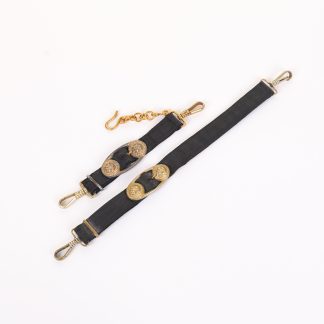 These are a set of deluxe late war production hangers. The reverse has a greenish felt backing which is very clean. The upper fittings are done with a swivel type system and the front leather is very supple and is made of a pigskin style.