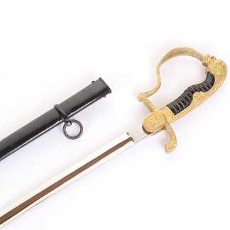 Absolutely stunning, perfect gilding on the hilt with a perfect grip. The gold is just stand-out killer. Would rate near 100%. The blade is gorgeous. Well marked. The scabbard has all original paint just with some minor age crazing to it. Would be very hard to upgrade this sword and if you are looking for the Roles Royce of Army swords, this art deco piece would be it.