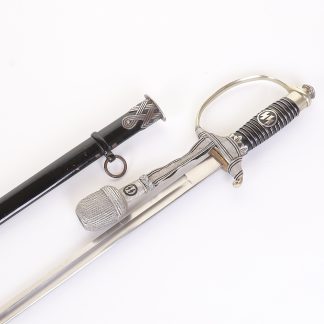 Absolutely stunning, perfect gilding on the hilt with a perfect grip. The gold is just stand-out killer. Would rate near 100%. The blade is gorgeous. Well marked. The scabbard has all original paint just with some minor age crazing to it. Would be very hard to upgrade this sword and if you are looking for the Roles Royce of Army swords, this art deco piece would be it.